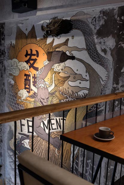 我們選用了仿古一點的素材這樣把一直流傳下來的酒文化和酒吧結(jié)合起來。